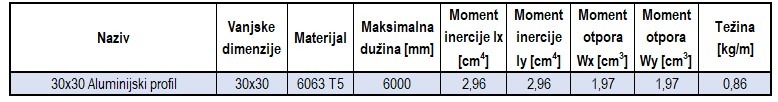 - Materijal: Aluminijski profil Serije 6063 T5